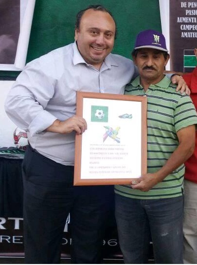 Destacado Socio Fundador, Encargado de la cancha del Club por 30 años hasta Enero del 2025. En la foto un reconocimiento por su aporte y gestión